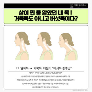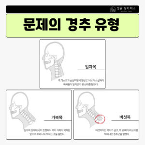 - 일자목: 정상적인 C자 커브가 사라지고 목뼈가 일자로 펴지는 상태