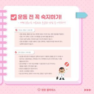 - 운동 중 통증이나 불편함이 느껴지면 즉시 중단하고 전문가의 도움을 받는 것이 중요합니다.