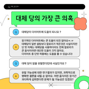 - 일부 대체당은 특유의 쓴맛이나 금속성 맛이 느껴질 수 있어 호불호가 갈릴 수 있습니다.