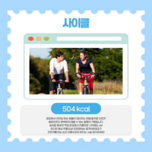 - 고려사항: 야외 사이클은 안전에 유의해야 하며, 실내 사이클은 지루함을 느낄 수 있다. 장시간 같은 자세로 인해 허리나 목에 부담이 올 수 있으므로 자세에 유의한다.
