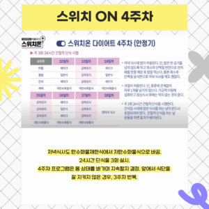 스위치온 다이어트는 보통 3~4주간의 체계적인 프로그램을 통해 진행된다.