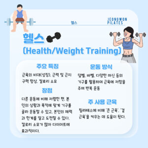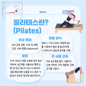 필라테스는 신체 중심부인 코어를 단련하고 척추와 관절의 올바른 정렬을 유도함으로써, 근력뿐만 아니라 유연성과 신체 안정성을 동시에 증진시키는 데 초점을 맞춘다. 이는 일상생활에서의 자세 개선 및 부상 위험 감소에 탁월한 효과를 보이며, 특히 재활이나 만성 통증 관리를 필요로 하는 이들에게 권장된다.
