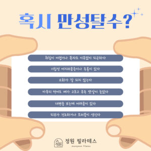 - 관절 및 근육 통증: 관절 사이 윤활유 역할을 하는 수액이 감소하여 운동 시 마찰이 커지고 통증이 유발된다.