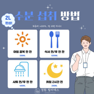 - 운동 및 샤워 전후: 발한으로 인한 수분 손실 예방 (약 400ml)